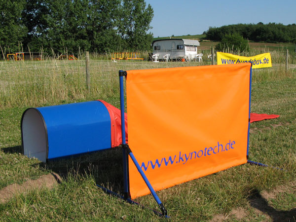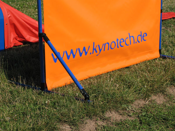Die Hürden der Marke KYNOTECH® bestehen aus kunststoff beschichteten Stahlrohren und Rohrverbindern aus Stahl. Dadurch ist eine enorme Langlebigkeit gewährleistet sowie eine gute Standhaftigkeit. Durch den Einsatz flexibler Rohrverbinder ist die Hürde mit wenigen Handgriffen in ihrer Höhe stufenlos verstellbar. Die Hürde entspricht dem Reglement der FCI.
