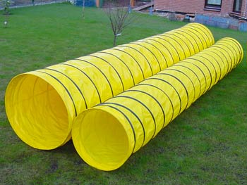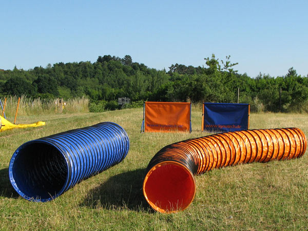 Unsere Agilitytunnel bestehen aus kunststoffbeschichteten, witterungsbeständigen und robusten Polyestergewebe mit Federstahldrahtspiralen.