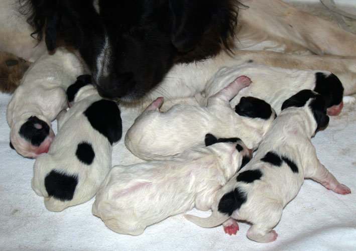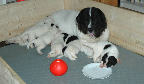 Sechs "kleine", gesunde Landseer-Welpen erblickten das Licht der Welt.