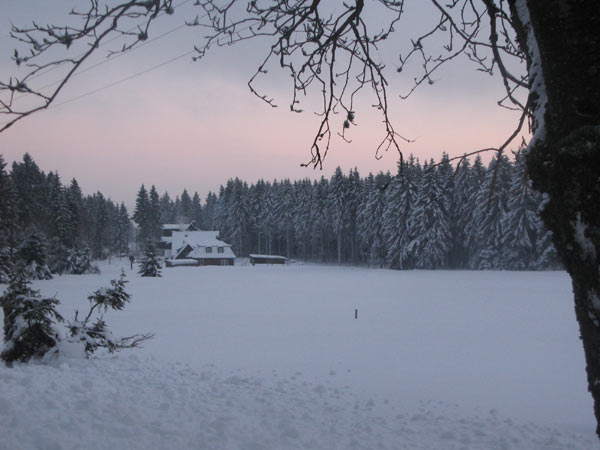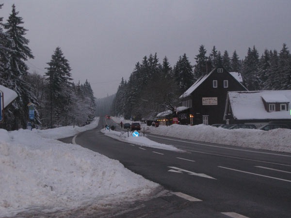 Nicht geplant war der extreme Regen bzw. die Schneefälle an diesen Abend, so dass ich mich auf dem Weg in den Harz gleich vor der Werratalbrücke an das Stauende anstellte. Nun war die Gesamtplanung des Abends, es ging erst um 21.00 Uhr weiter nicht mehr einzuhalten, so dass ich meinen Bruder erst in der Nacht in Braunlage auflesen konnte und wir dann im Schneetreiben zum Königskrug fuhren um dort zu übernachten.