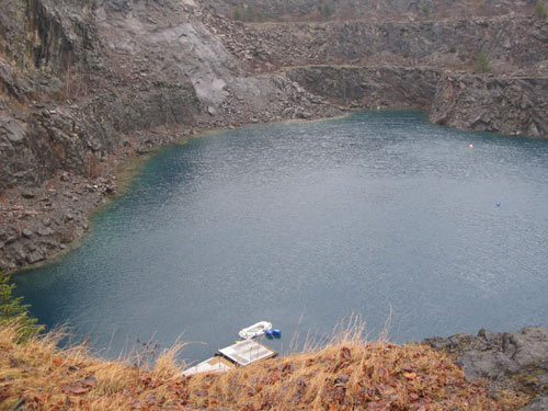 Messinghausen ist mein absoluter Lieblingstauchplatz. Der See befindet sich in einem ehemaligen Steinbruch und ist ca. 45 m tief. In der Regel hat man bis zu 20 m Sicht, muss jedoch darauf vorbereitet sein, dass das Wasser das ganze Jahr über ziemlich kalt ist. Der Betreiber, Oliver Hecht, hat sich die Mühe gemacht für uns Taucher mehrere Tauchspots wie Röhren, Wohnwagen, M-Boot, Container und VW Bus zu versenken. Letztes Jahr hat er zusätzlich noch Forellen eingsetzt. Der Abstieg zum See, vom Parkplatz aus, ist ein wenig schweißtreibend.
